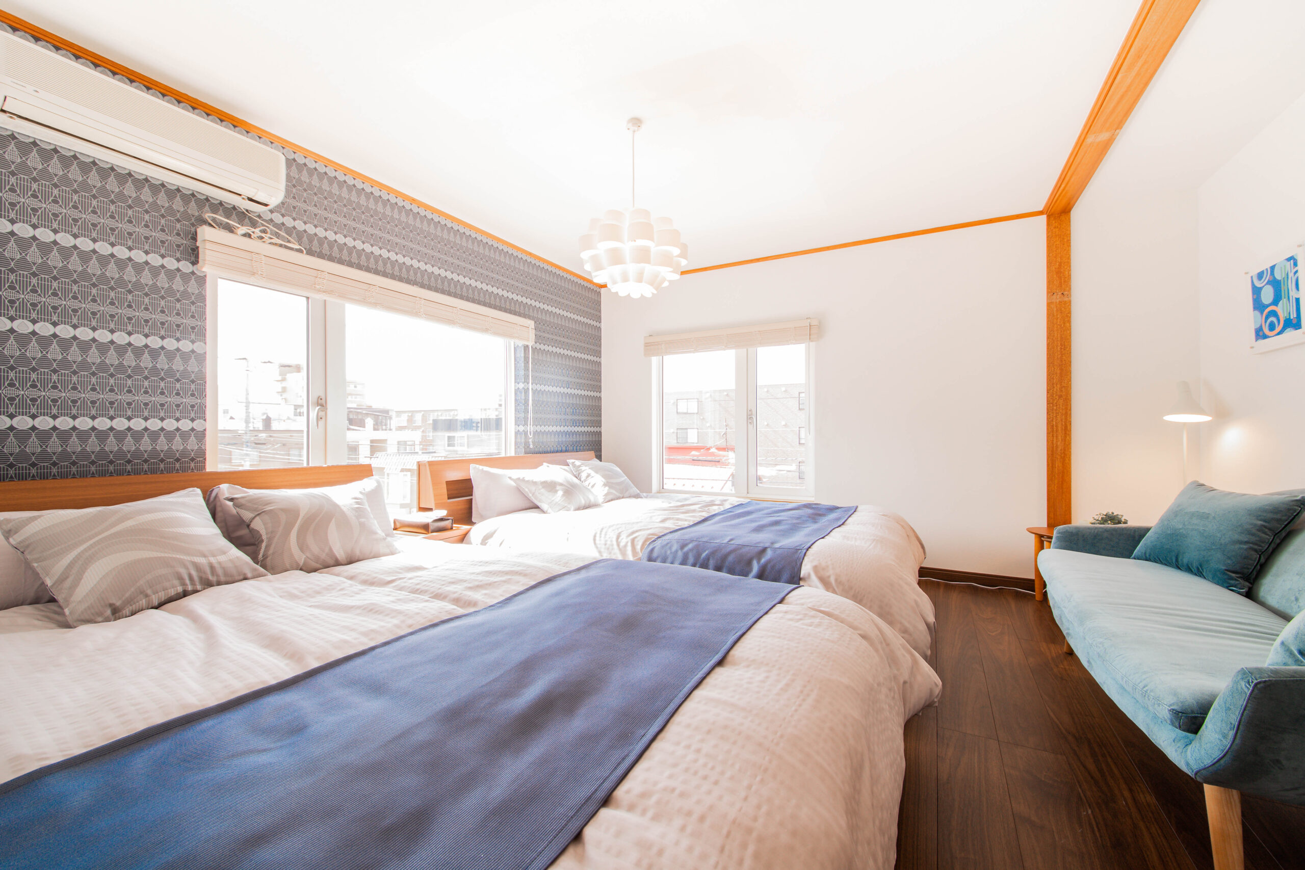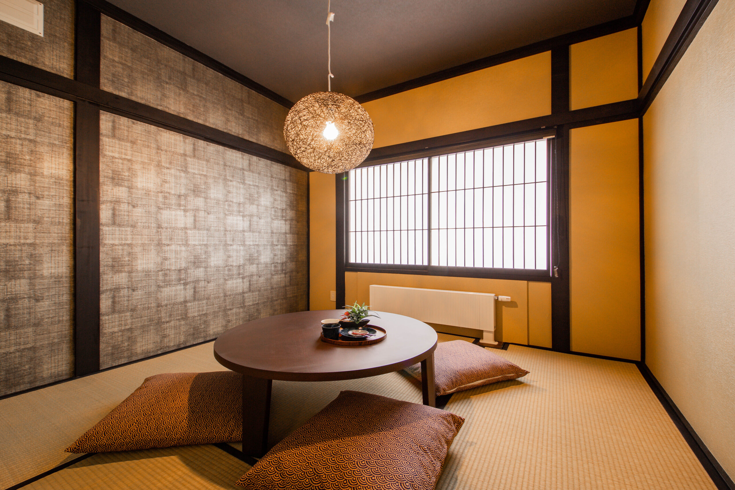「和」に合うグレーとイエローの色味を使いながらも、洋室向きのクロスを使用することで、モダンな雰囲気に仕上げました。